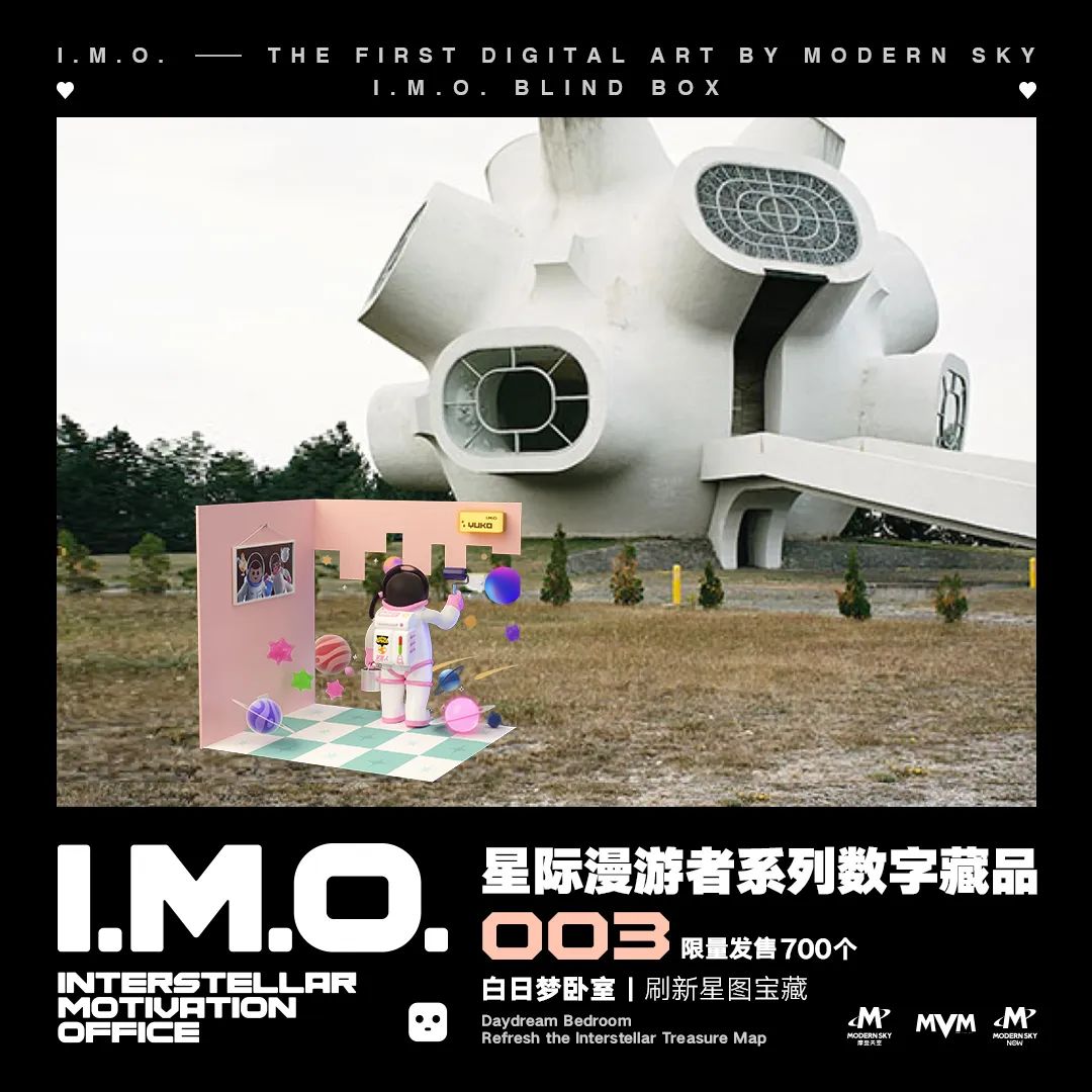 摩登天空首个上线的数字藏品,是以曾数次在社交网站上刷屏的「I.M.O.」为原型的【I.M.O. 星际动力别动队-星际漫游者】系列。
