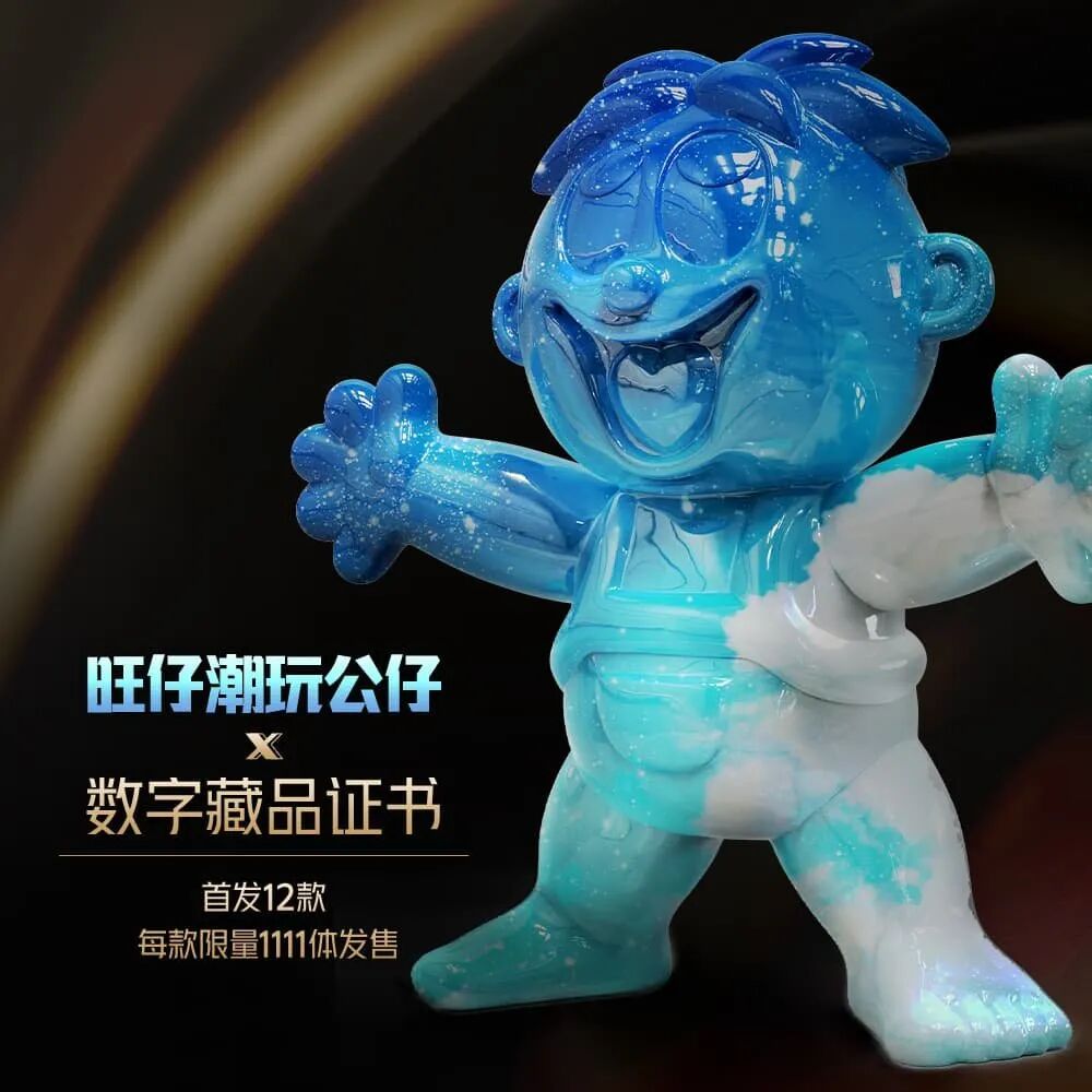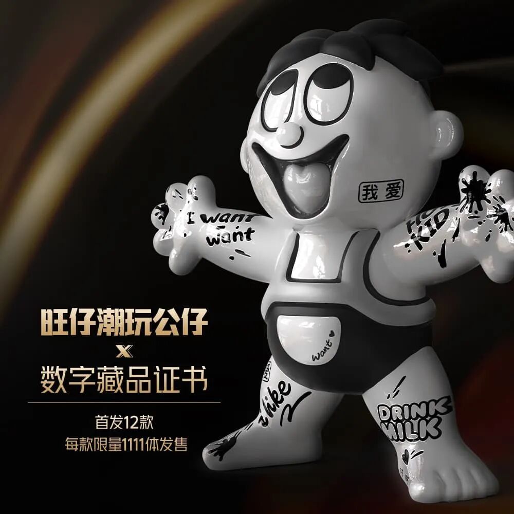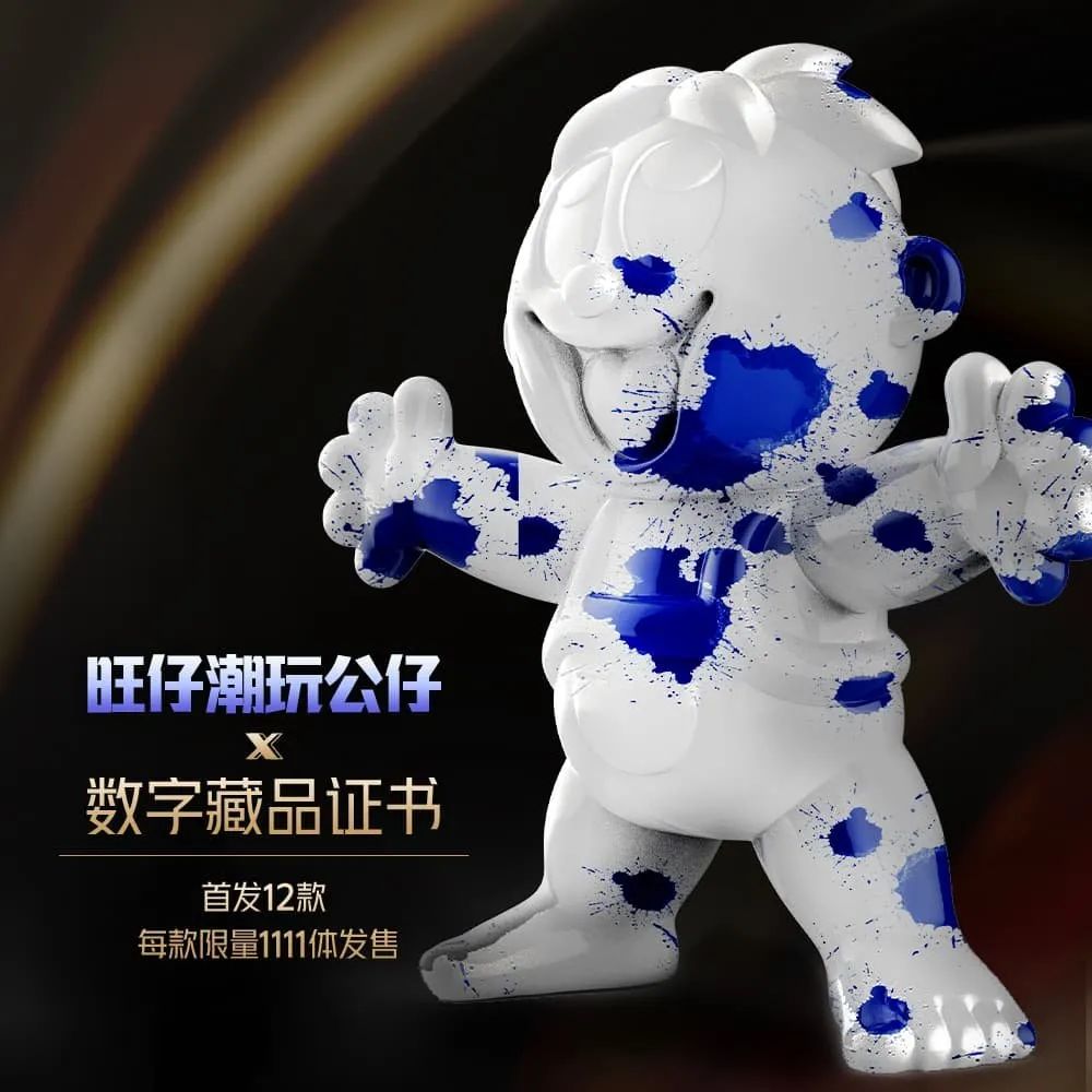 还有几个公仔,被脑洞大开的网友一一解说。比如说这个白底蓝色泼墨的旺仔。