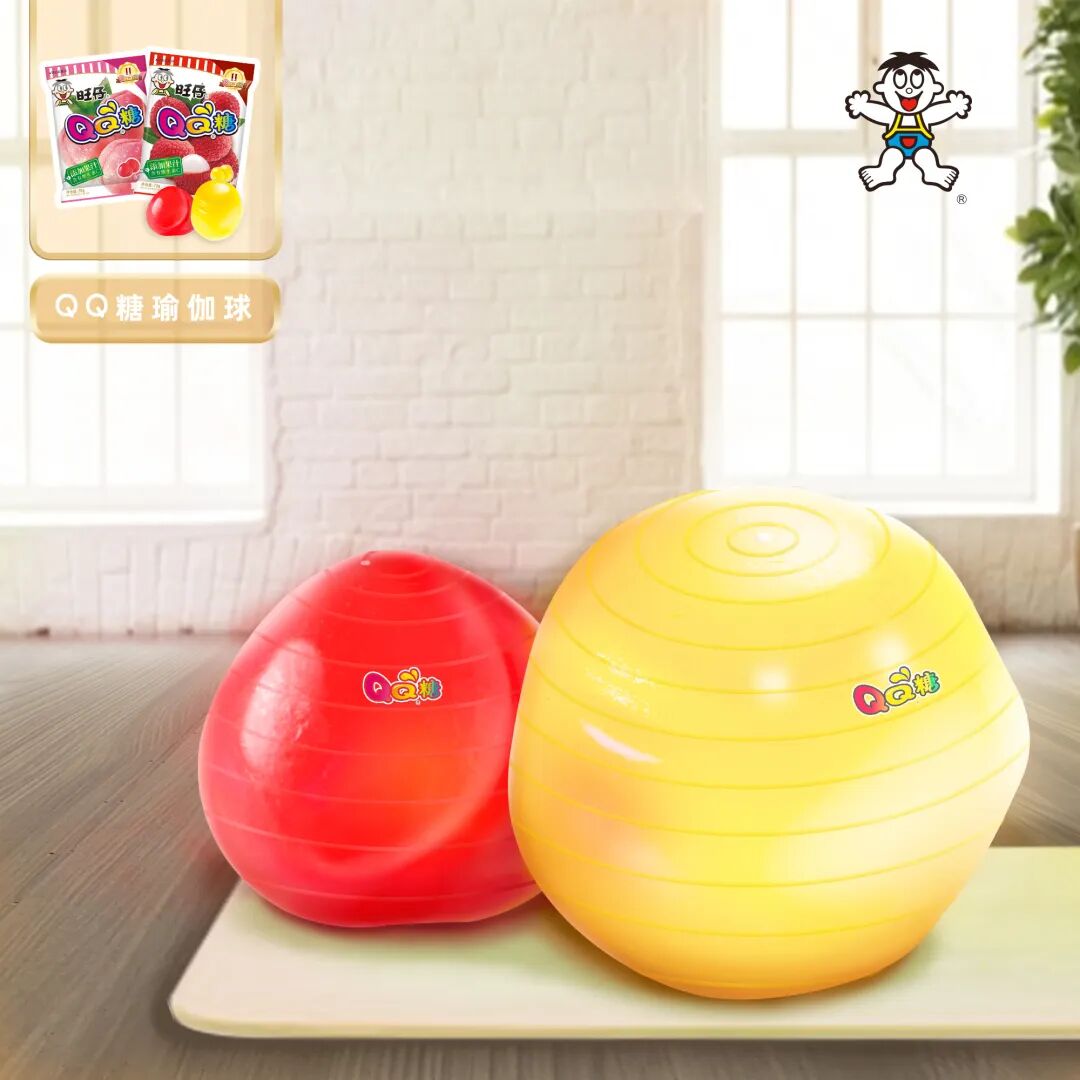 比如说今年愚人节,旺仔来了一套旺仔牌健身器材。像QQ糖一样Q弹的QQ糖瑜伽球。