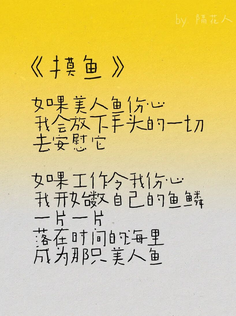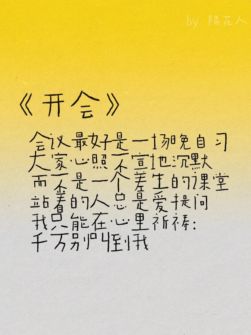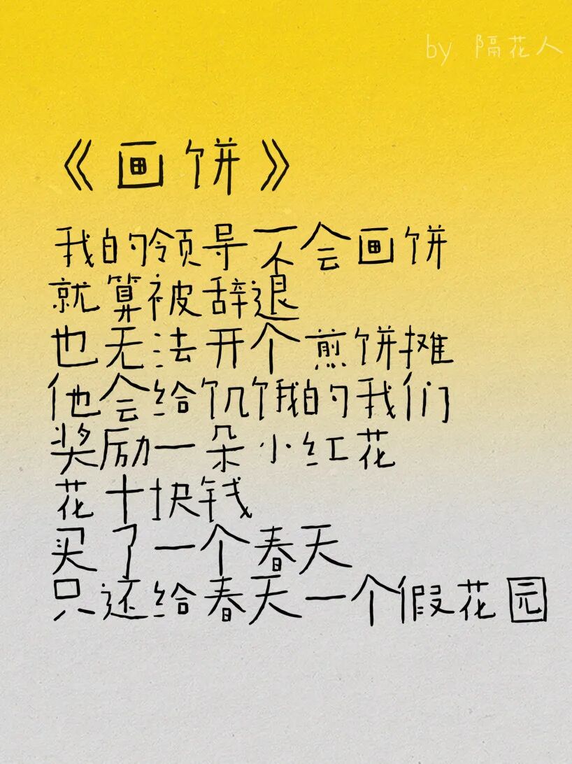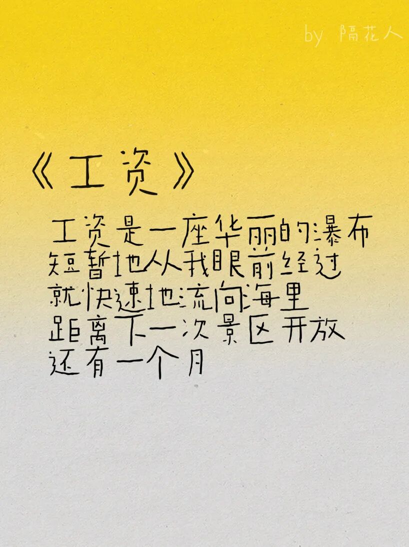 除了《带着诗歌上街去》系列,隔花人还写了一组打工人诗歌,以犀利的语言和生动形象的比喻说出打工人的心声。