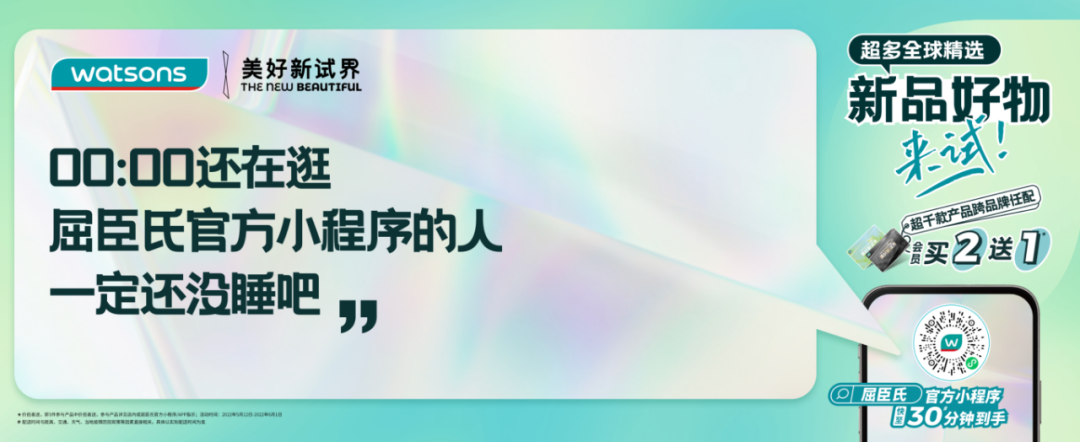 不同场景的切换考虑到了不同消费者的需求,如:毕业学生、防晒人群、熬夜党等等,可以更精准辐射用户群。顺势引出上屈臣氏官方小程序买彩妆、防晒、晚霜。