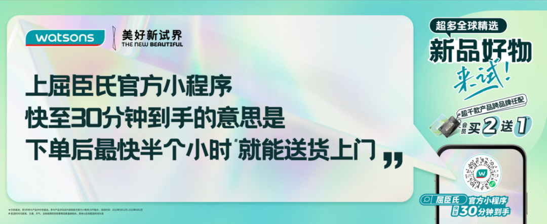 作为众所熟知的美妆个护零售连锁品牌,屈臣氏是人们线下购买美妆、个护、零食等产品的首选。然而,随着线上销售的崛起以及新一代消费者需求的变化,屈臣氏也面临高速增长和门店扩张后的瓶颈。因此屈臣氏推出了同样好逛好买的线上小程序,小程序线上线下场景融合的能力,能够为其重构消费与服务的关系,拓宽消费边界,释放消费潜力。为了让更多人了解屈臣氏小程序,渗透“美护30分钟送达”的核心优势,屈臣氏将“废话文案”搬上了广告大屏,用一种不知所云的语态,迎合互联网形态下年轻人的交流语境。相比以往“纯干货信息”的叫卖式广告语,这次屈臣氏去繁就简,在文案上下足了功夫,用有趣好玩的废话文案,安利屈臣氏小程序。不得不说屈臣氏掌握了废话文学的精髓,来往的行人看到这样的废话文案,很难不被这广告吸引。借助废话文案,屈臣氏将“买新品好物上屈臣氏官方小程序”的广告讯息植入受众心智。