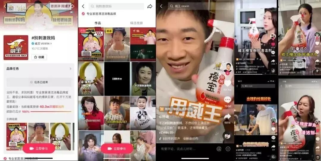 威王选择微博+抖音双平台互动宣传的方式,发起#别刺激我妈#话题讨论和全民挑战赛,通过抖音红人带动网民积极参与带话题创作。