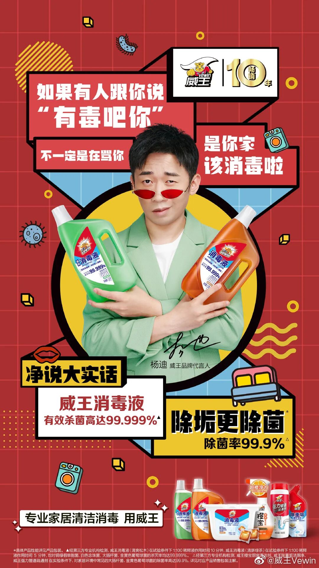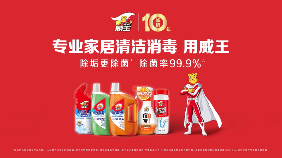 威王在本次十周年的宣传中,选择符合产品内涵的明星代言人,同时打通营销链路,将不同营销方式进行整合,为产品获取热度的同时,也实现了品牌价值的沉淀,为家清消毒行业打造了营销思路新范本。