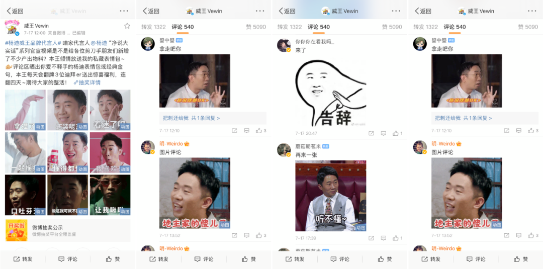 同时,借助“净说大实话”搞笑表情包让产品实力出圈,增加品牌曝光量。双平台互动真正实现了流量承接与转化,引爆产品热点。