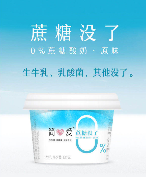 首先,在产品品类上,简爱主打无添加、无糖低糖的低温高端酸奶产品理念,通过品类细分创新开拓了差异化的竞争赛道。