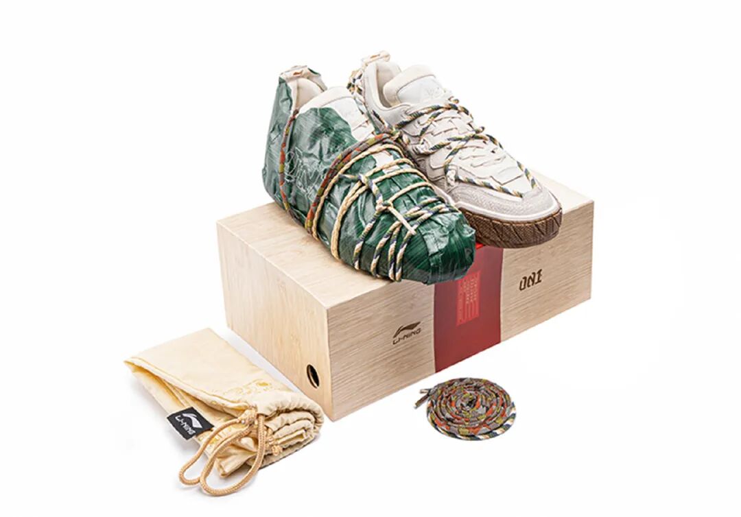 李宁这次的端午节借势设计,以传统食物“粽子”为灵感。外包装盒子是以木质材质设计,并搭配中国传统红色。