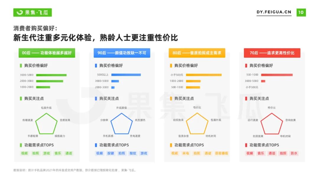 身处消费需求迅速迭代的时代,用户的购机需求越发精细。其中新生代群体更注重手机的多元化体验,而熟龄人士则更注重商品的性价比。“千人千面”的个性需求,也让新锐品牌拥有更多发力的空间。主打游戏手机的「黑鲨」「玩家国度」以及主打性能体验的 「realme」等,均获得较好的市场表现。