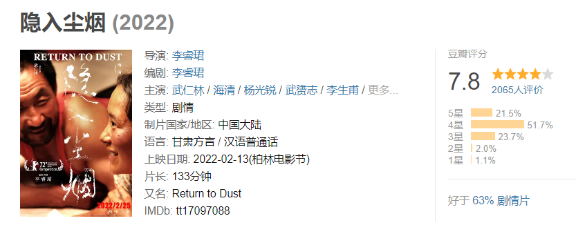 但事实上,《隐入尘烟》讲述了两个被各自家庭抛弃掉的人,在日复一日的耕耘中,二人相濡以沫,共建家园。
