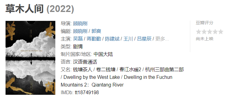 《草木人间》发布概念海报,黄海设计,片名四个大字由书法家许静提写,鎏金质感的毛笔字与黑白镜像的,黑白金三色,勾勒出一幅“行止山水之象,俯仰天地之间”的绘卷。