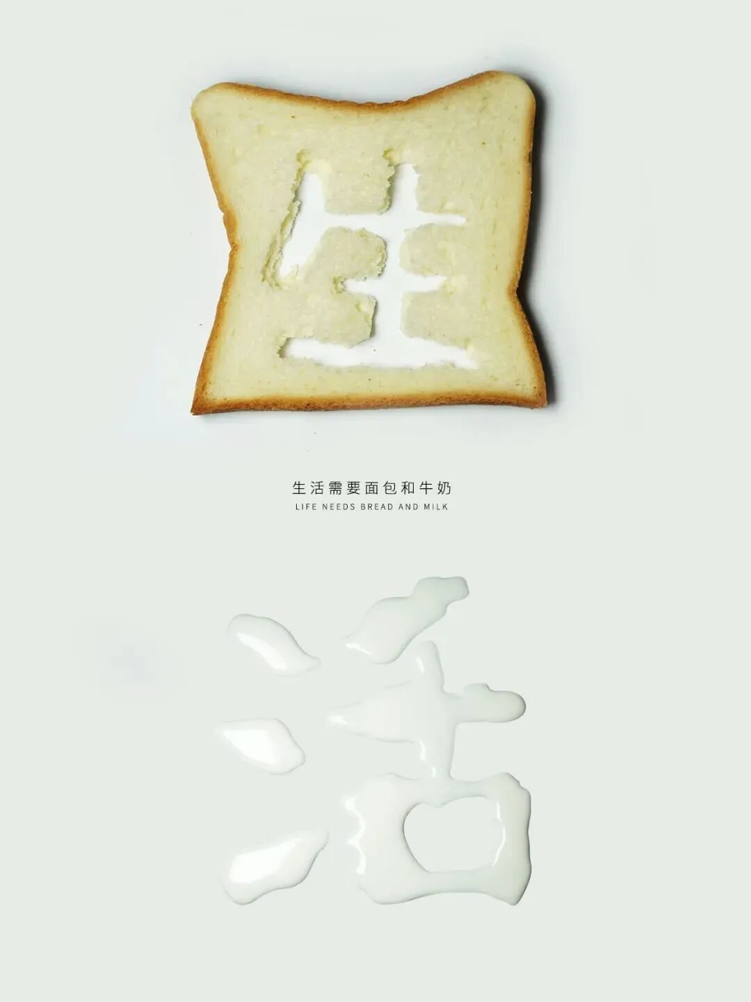 最近他在红书上又又又火了,来看看暴涨10万粉丝的海报作品,通过实物组合形式拍摄出来的海报大片,设计源于生活啊!面包