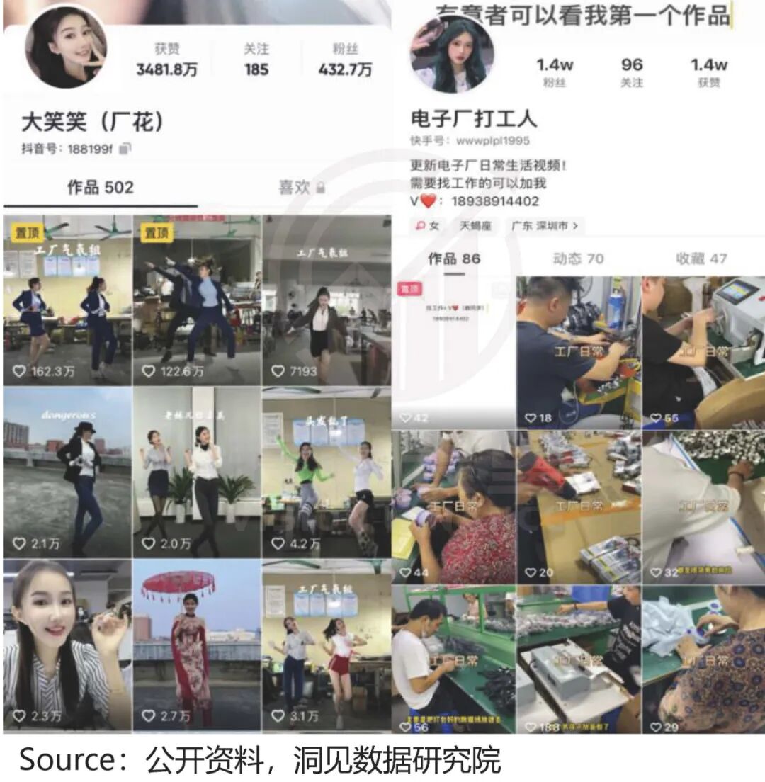 举例理解就是,同样是工厂背景,“厂花大笑笑”账号,内容主打唱歌跳舞,秀场为主,滤镜感很重,可能掩盖了真实的工作场景,产生认知误导;