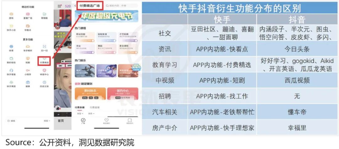 道理很简单,快手和抖音虽同处短视频业态,但二者的生态属性截然不同,“虹吸”推论本身就不成立。本文将从平台内容和延伸服务两方面,展开分析。