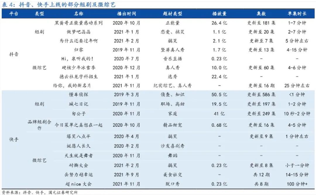这反映到结果上,快手的短剧,数量和题材较丰富,包括侦查、职场、家庭、甜宠等,价值观趋向多元。据2022Q1电话会:目前已累计推出了近12,000部短剧,拥有350部头部优质短剧。