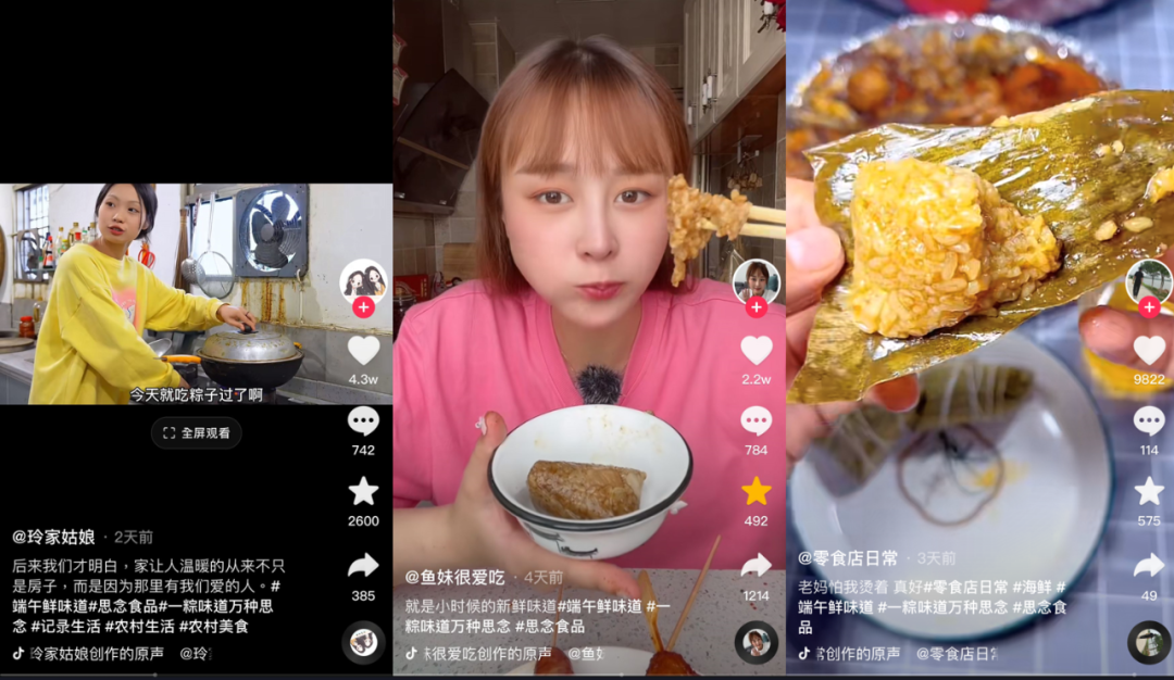 在抖音庞大的内容矩阵加码之下,来自美食、生活等各大领域的博主们纷纷通过各式各样的创意呈现独居特色的端午内容,借优质内容为载体最终回归到思念食品的产品安利上,在节日氛围与情感因素的双重加持下,于多彩的生活语境中完成流量到销量的长效变现。
