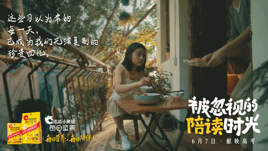 在影片中,洽洽巧妙地将每日一包的洽洽小黄袋,成为陪读父母与孩子的情感纽带。陪读父母的关怀,就像洽洽小黄袋每日坚果一样,不仅提供每日的营养,也是每日的陪伴。
