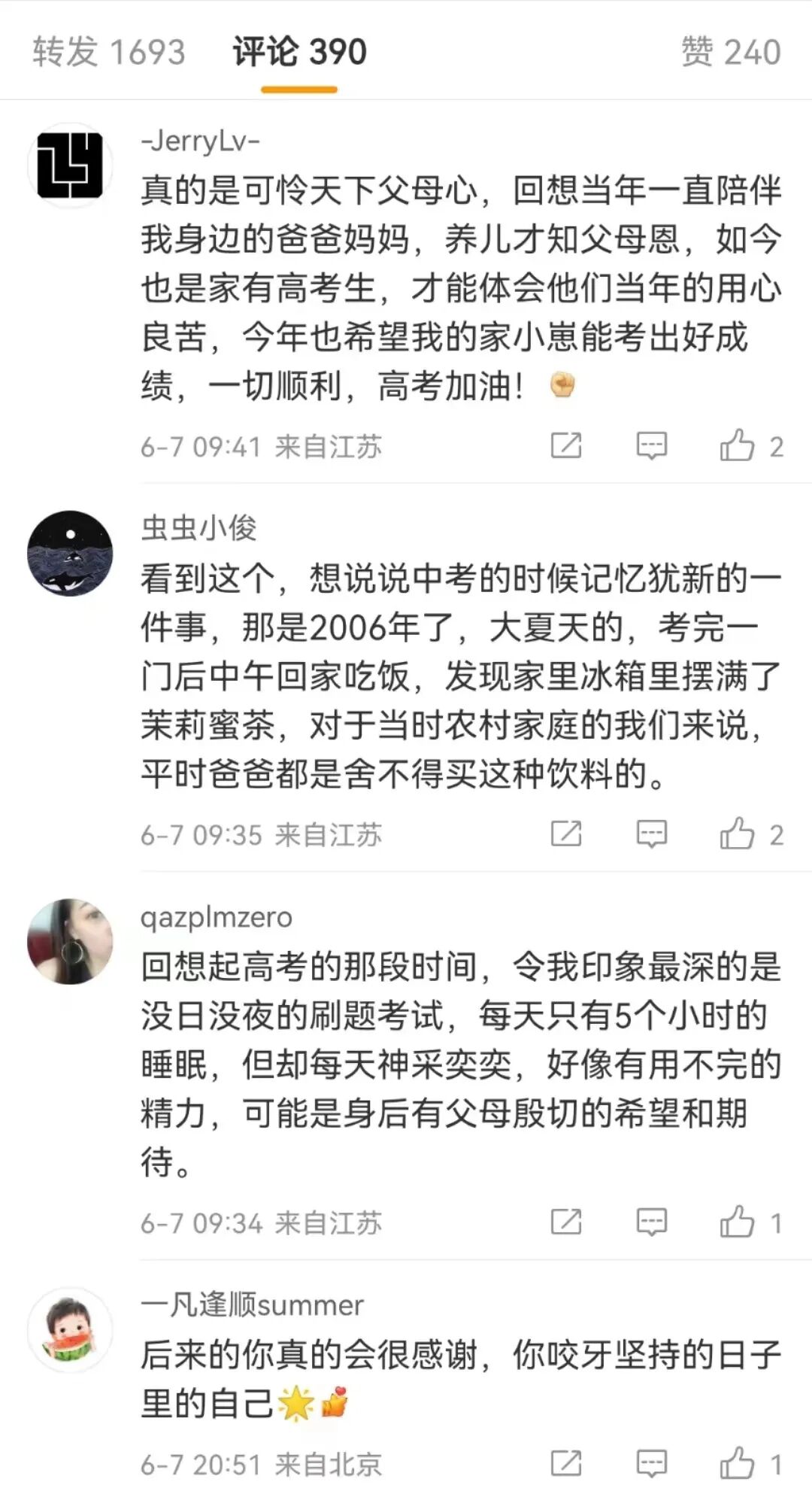 洽洽这支短片一经上线,像是在平静的湖面投掷了一颗石子,隐藏在角落里的回忆开始涌现,唤起了大家脑海深处关于陪读的记忆。在一众“高考加油”声中,那些经历过陪伴的人,看完短片深受触动,纷纷主动分享自己的陪读故事,感慨到:那段时光,现在回想起来如此美好。还有人表示:我拍了那么多照片,却忘了跟妈妈拍一张。