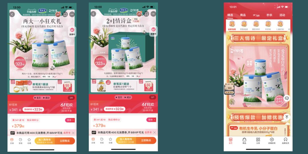 在转化效果端,为品牌完成销售闭环,通过天猫、京东站内多频曝光『两大一小新鲜礼』礼盒,强势刺激消费者的热情。