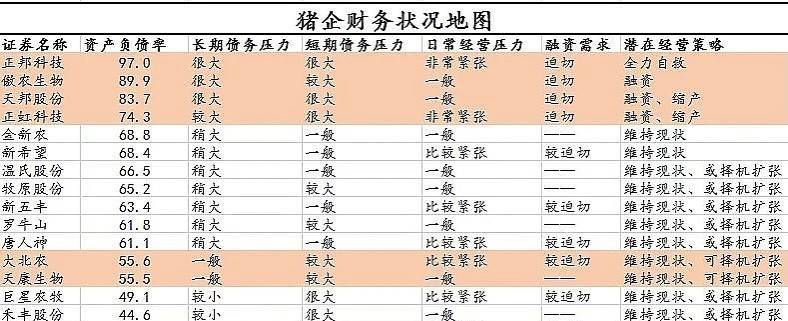 但是,持续下跌的猪价使本就受挫的生猪养殖利润锐减,甚至猪价低于行业成本线时,养一头猪起码要亏五六百元。养得越多,亏得就越多,从头部猪企的财报可看,五大头部猪企中,仅牧原股份去年实现归母净利润69.04亿元,正邦科技、温氏股份、新希望和天邦股份去年分别亏损达188.2亿元、134.亿元、95.91亿元和44.62亿元。