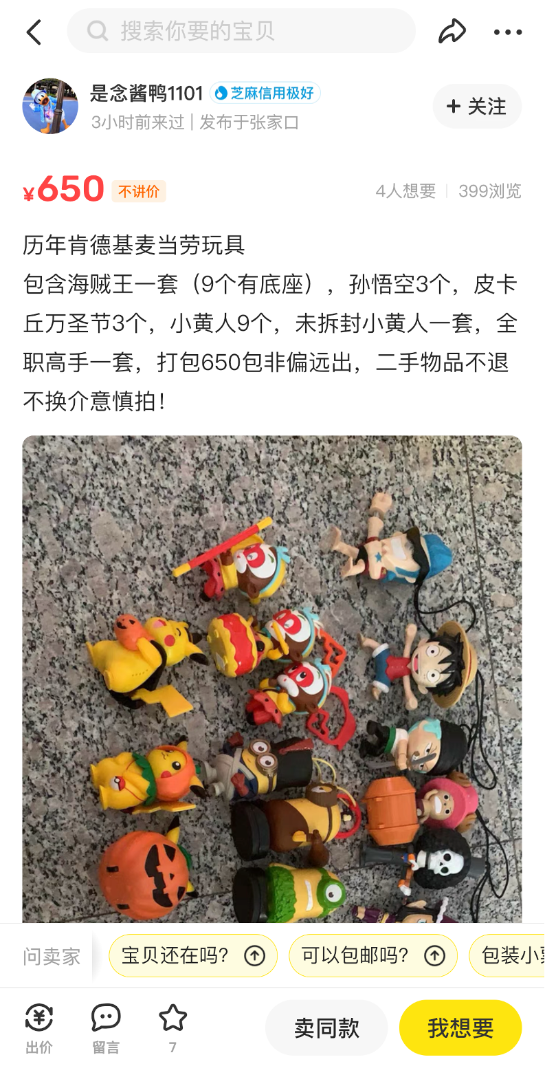 通过多年以来连续不断的玩具打造,六一玩具也成为大朋友小朋友对肯德基品牌感知的一大重要组成部分。还有一部分人养成了搜集历年六一玩具的习惯。甚至于,在二手交易平台,也不乏肯德基玩具粉的身影。在经年累月的搜集中,玩具也成为品牌情怀的一部分。
