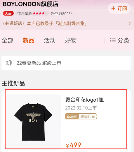 看视频截图不难发现,打人事件男主身上的大金鹰图案特显眼。说实话我不识货,不说的话,我以为是几十块元的淘宝货。但我打开BOY LONDON、范思哲的官方旗舰店,发现同款设计衣服的官方售价都不便宜,范思哲的原价还是千元起步。02