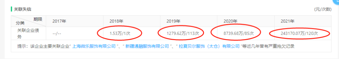 2018年,拉夏贝尔发布财报亏损为1.6亿元,在此后三年中拉夏贝尔亏损进一步扩大,频频发布“退市风险”预警。