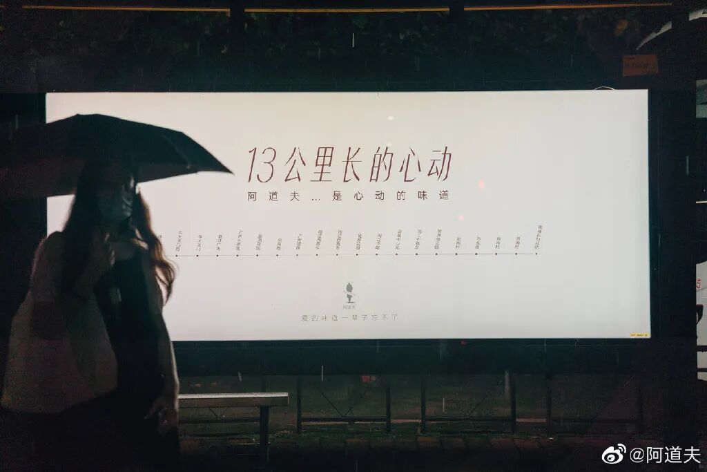 更有时尚博主分享超详细的公交站拍照干货技巧,带动更多人前去打卡。疫情之下,线下广告尤为难做,而阿道夫却通过一个创意活动,做了一次线下车站的心动故事打卡展,引发全网刷屏。既可以单独阅读其中一站,也能将20个站候车亭连起来形成连贯的情节,这种户外广告投放方式前所未见。疫情改变了人与人的社交距离,阿道夫借助站台广告去唤起人们最初的那份心动,也通过公共艺术装置,向社会传递爱和温暖。03