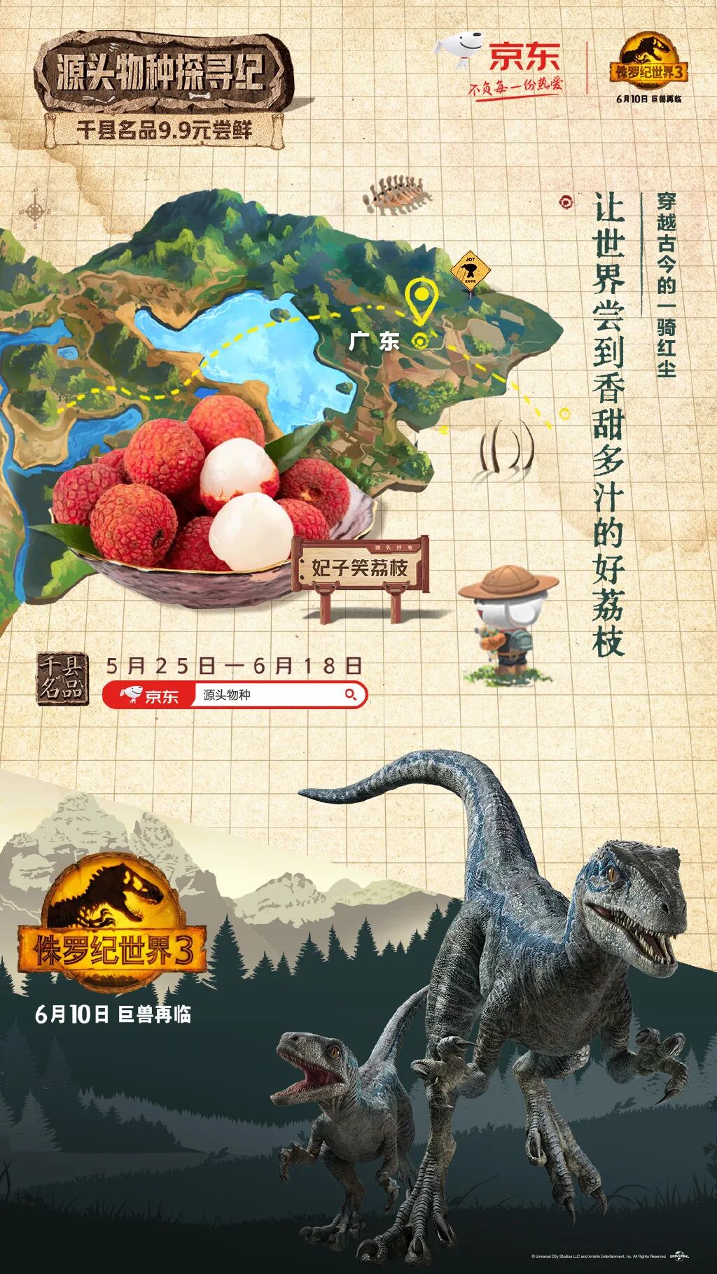 京东呼应《侏罗纪世界3》电影背景,人类与恐龙霸主间的故事进入全新境界,恐龙跟随着美食探险家JOY的脚步,来到人类世界探索源头好物。