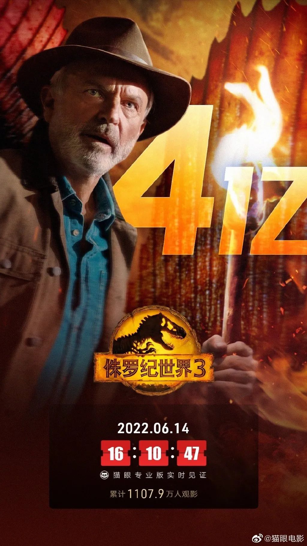 据猫眼电影数据显示,截止目前《侏罗纪世界3》票房突破4亿,再次起关注热。