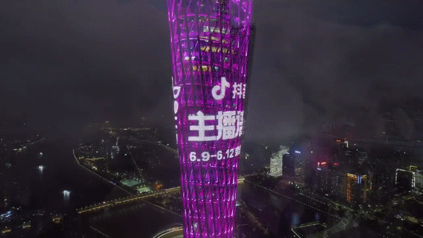 武汉天悦外滩金融中心和广州塔的灯光秀、杭州天联等多个广告位将“主播请就位”打造成为城市夜色中的闪耀一景。