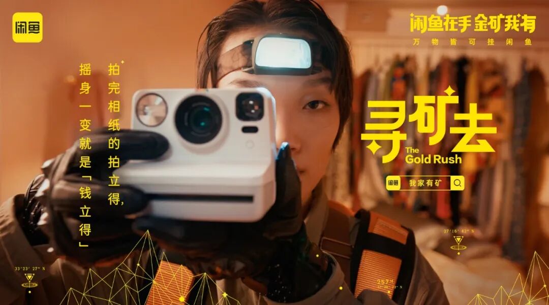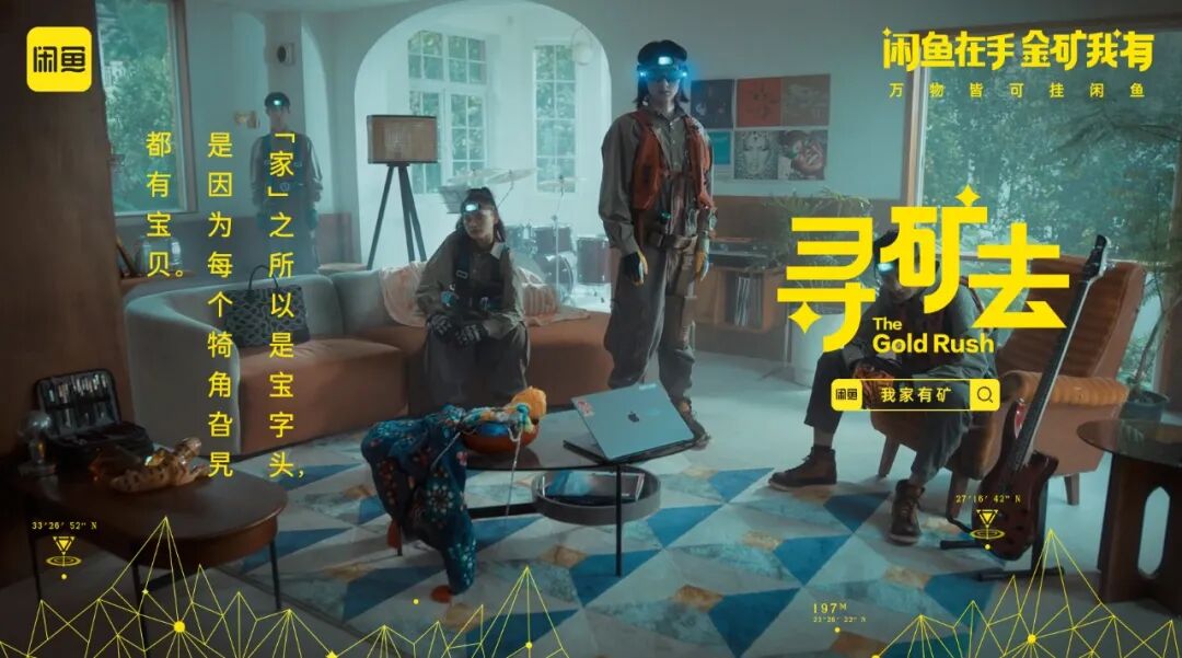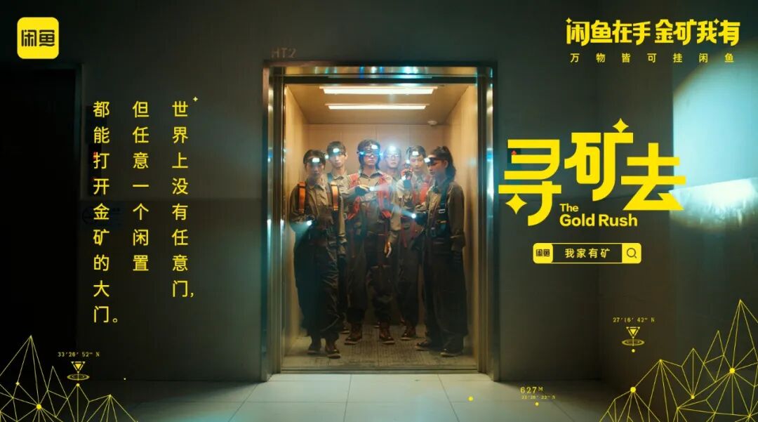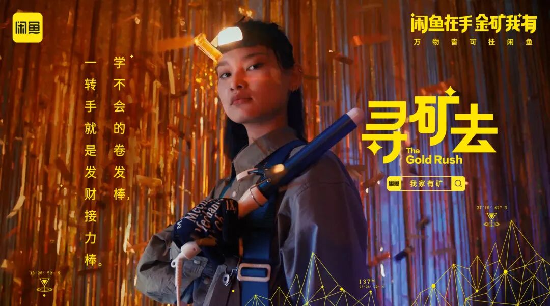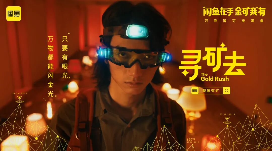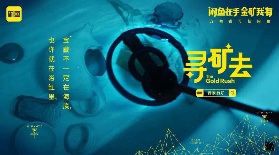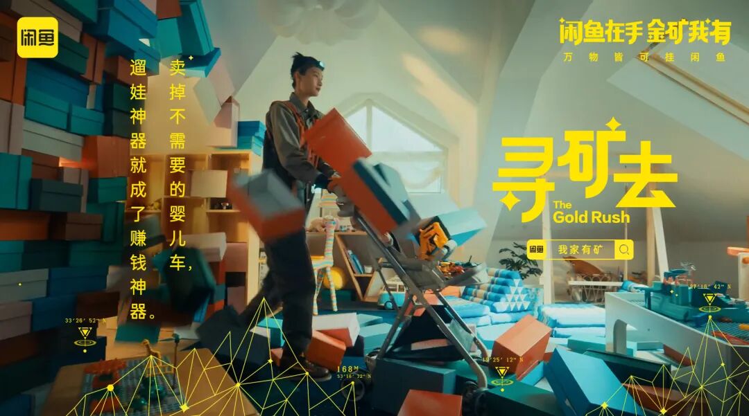 身穿户外工装、头戴保护头盔的淘金者,开启闲鱼寻矿行动寻找家中闲置物品,一经淘金者“慧眼”发现的闲置物品——婴儿车,卷发棒、游戏机等,一件件都变成了价值不菲的宝矿,有如大型淘捡矿石现场。闲鱼借助一条幽默不失哲理的视频,生动演绎原来只要带着“闲鱼式”眼光,就会发现家里处处是金矿。