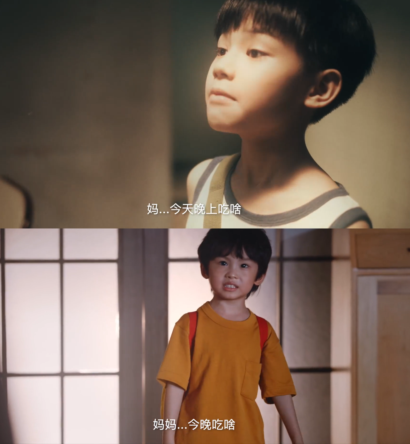 短片的最后,孩子跑进来问“妈,今天晚上吃啥”,首尾呼应,好像这些事又会在第二对父子之间重新发生一边,当然,或许这是会发生在任何一对父子之间的事。请记得,他们可能从来不会把爱放在嘴边,但是时间会为他们证明一切。