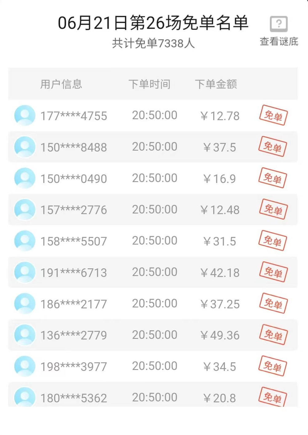 猜中时间的订单,也可能因为排序靠后或者不符合其他条件而最终未获得免单;猜错时间的用户,也只能吃下美食,蜂拥在社交媒体上发布一条“赌狗赌狗,赌到最后一无所有”的动态。