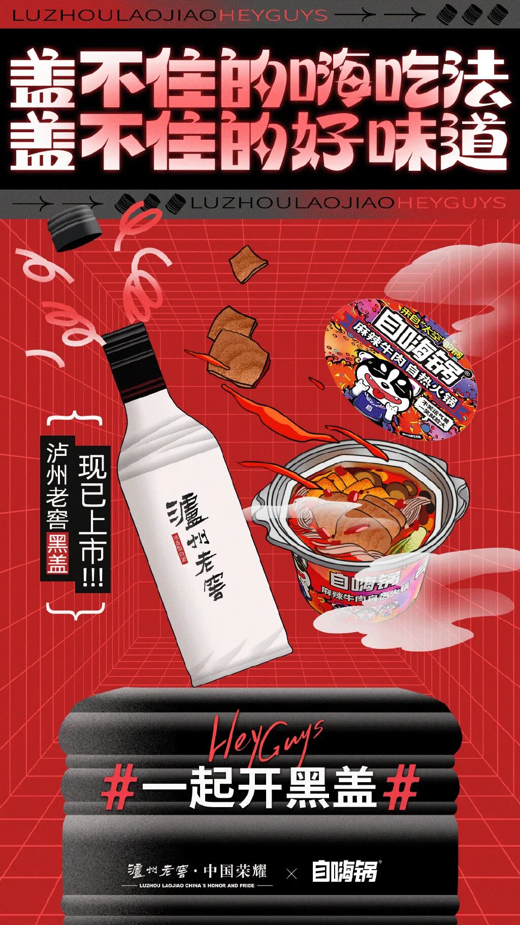 为了拓宽大众的消费联想,泸州老窖还和南方黑芝麻、康佳、厨邦酱油、自嗨锅、小龙坎、苏泊尔等品牌进行联动传播。