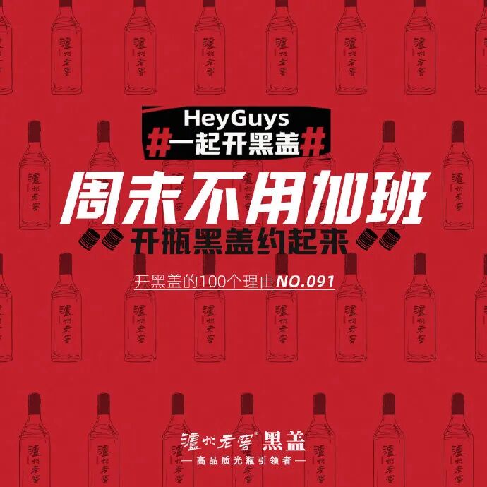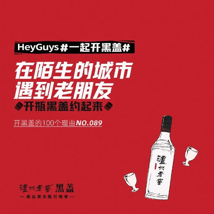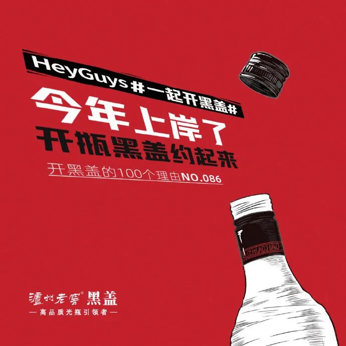 泸州老窖黑盖还同步上线了“开黑盖的100个理由”系列主题海报,用玩梗的方式,进一步搭建新品和多元化场景的联结。▲ 左右滑动查看主题海报