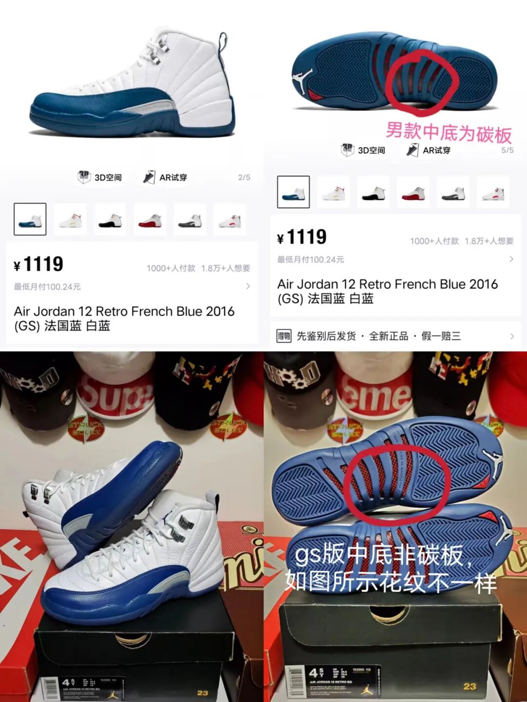 ▲得物平台上架的aj12法国蓝gs图文不符,图片来源:得物、instagram