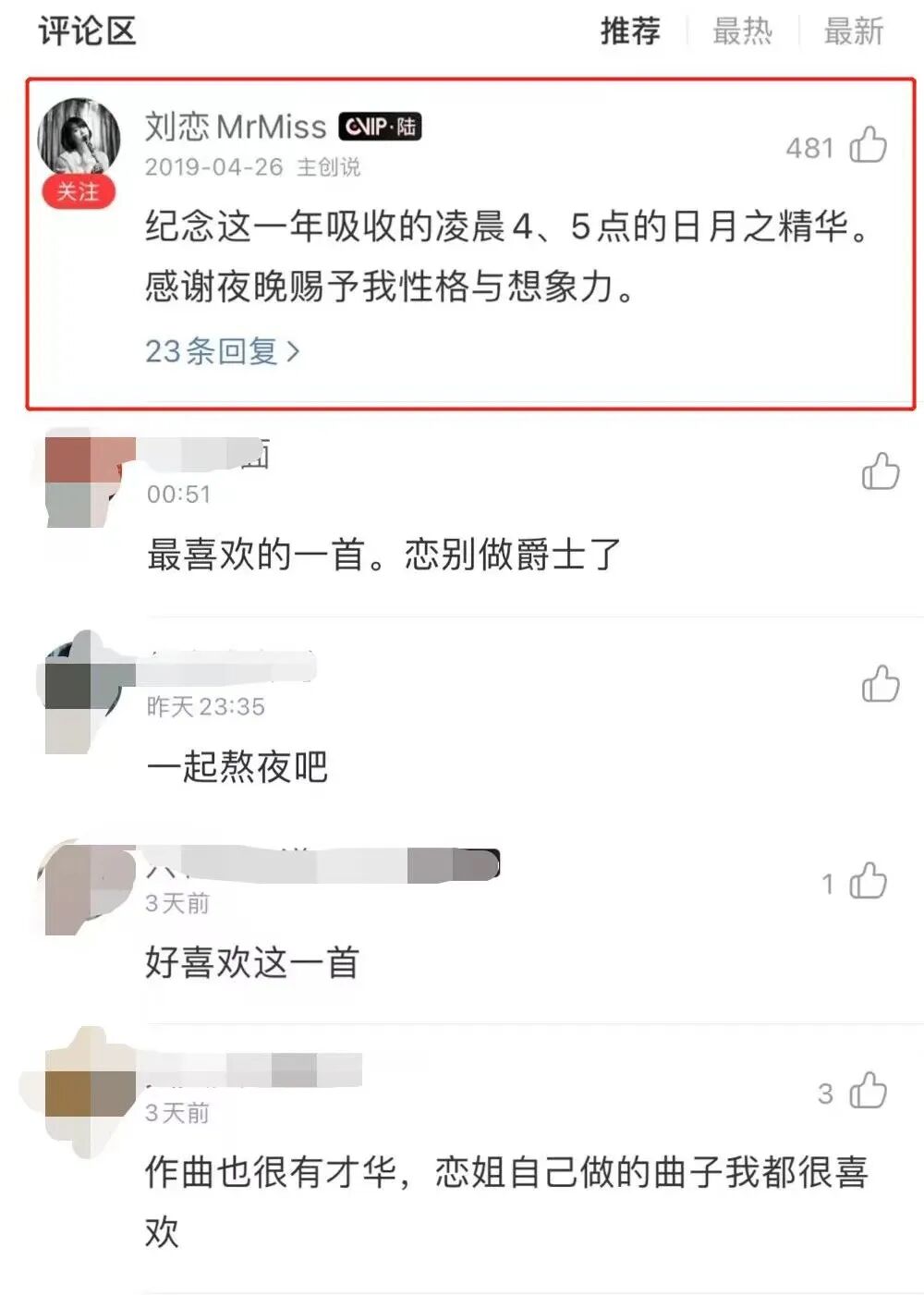 你最喜欢刘恋的哪首歌?里面的哪几句词让你印象深刻?一起在评论区聊聊吧~最后,希望刘恋在《浪姐3》一往无前!