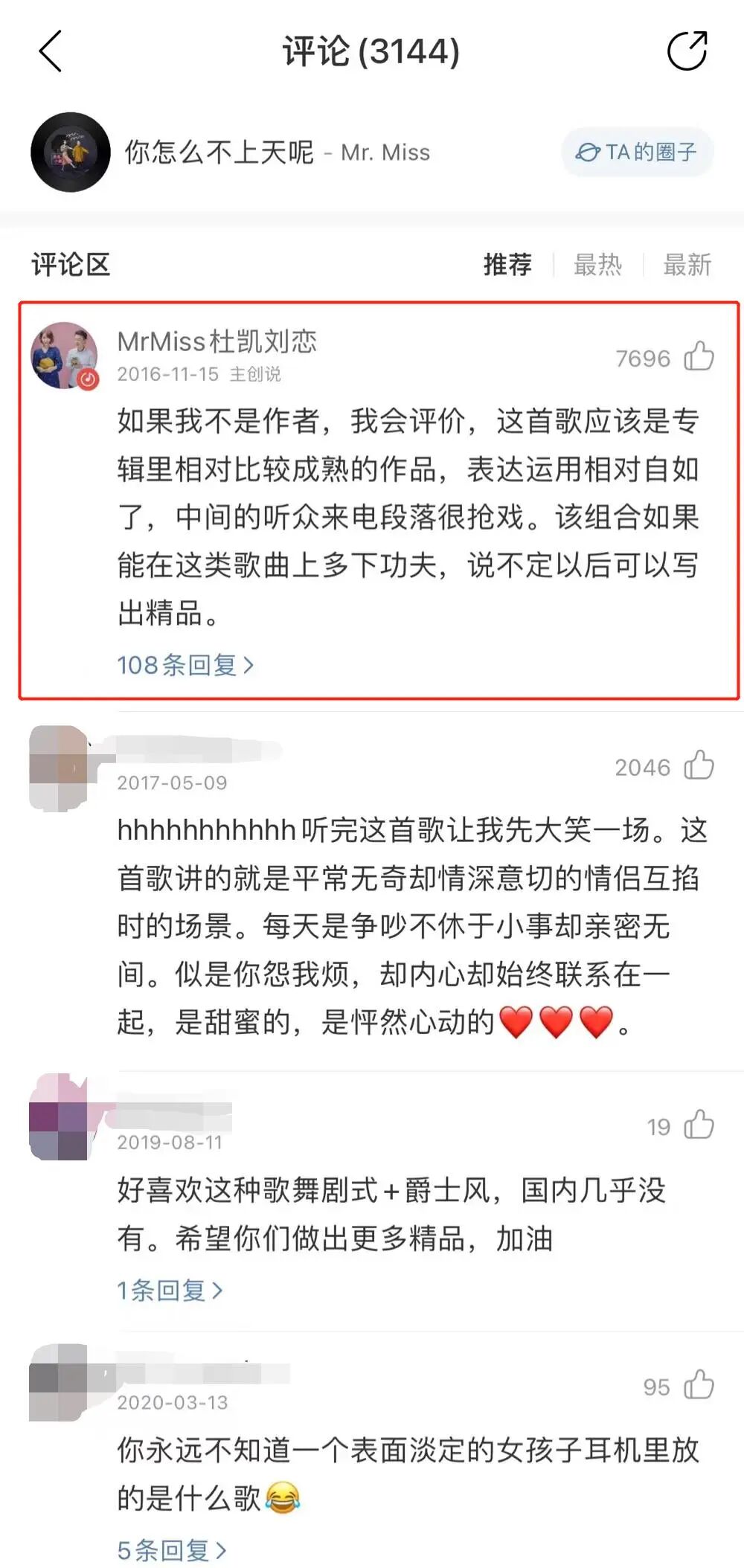 《你怎么不上天呢》的音乐评论区