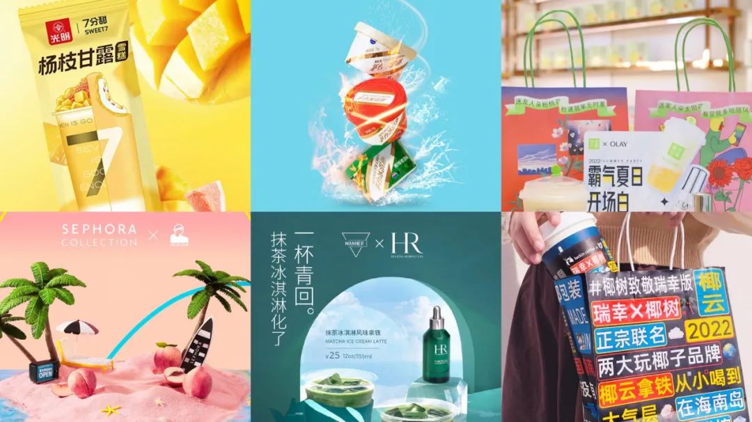 比方说,「光明」x「7分甜」携手推新“杨枝甘露雪糕”;「茅台」x「蒙牛」联手推出“白酒+冰淇淋”系列单品;「Manner Coffee」×「HR赫莲娜」联名上新“一杯青回”;