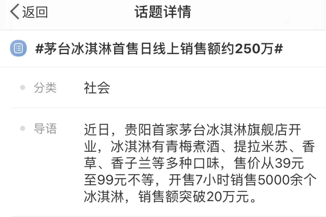 跨界联名是新时代下产物出的一种新的营销方式,品牌通过跨行业出联名新品,会大概率使其新品更快进入大众视野,被观众关注/讨论,若此次联名新品某一个点戳中了大众消费者的情绪,会助力双方品牌赚足曝光度及影响力,同时,还能为品牌旗下的新品乃至其它产品引流一波,加大产品销量力度。如最近,茅台 x 蒙牛联合推出“白酒+冰淇淋”系列产品的茅台冰淇淋单品,借夏日炙手可热的冰淇淋热度,在最恰当时期跨界联名,正中当下大众消费者情绪。一经消息推出,备受网友关注。据悉,开售7小时销售5000余个冰淇淋,销售额突破20万元。首发当日线上销售额约250万元。