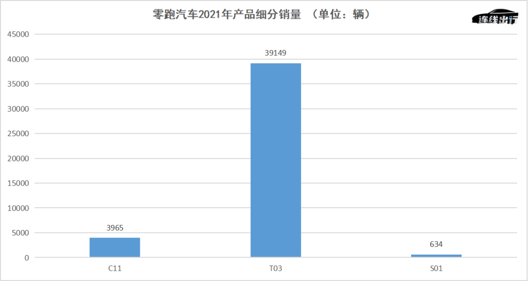零跑汽车2021年产品细分销量,数据来源于招股书,连线出行制图