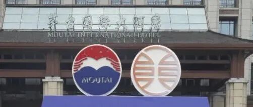 会议LOGO也和贵州茅台集团LOGO并排以实物的形式出现,两者的风格对比非常明显。