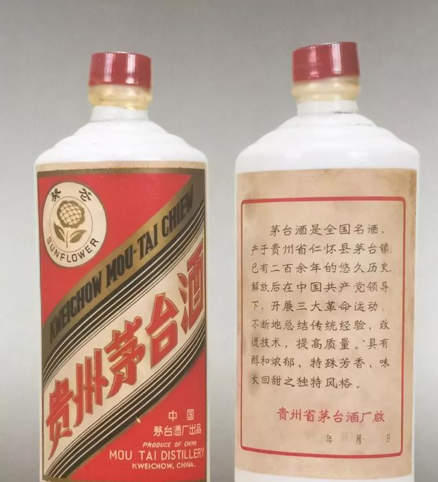 一直到1973年,茅台酒"葵花牌"开始转回"飞天牌"。而目前市面上葵花标茅台非常稀有,据称单瓶曾卖到将近38万元。