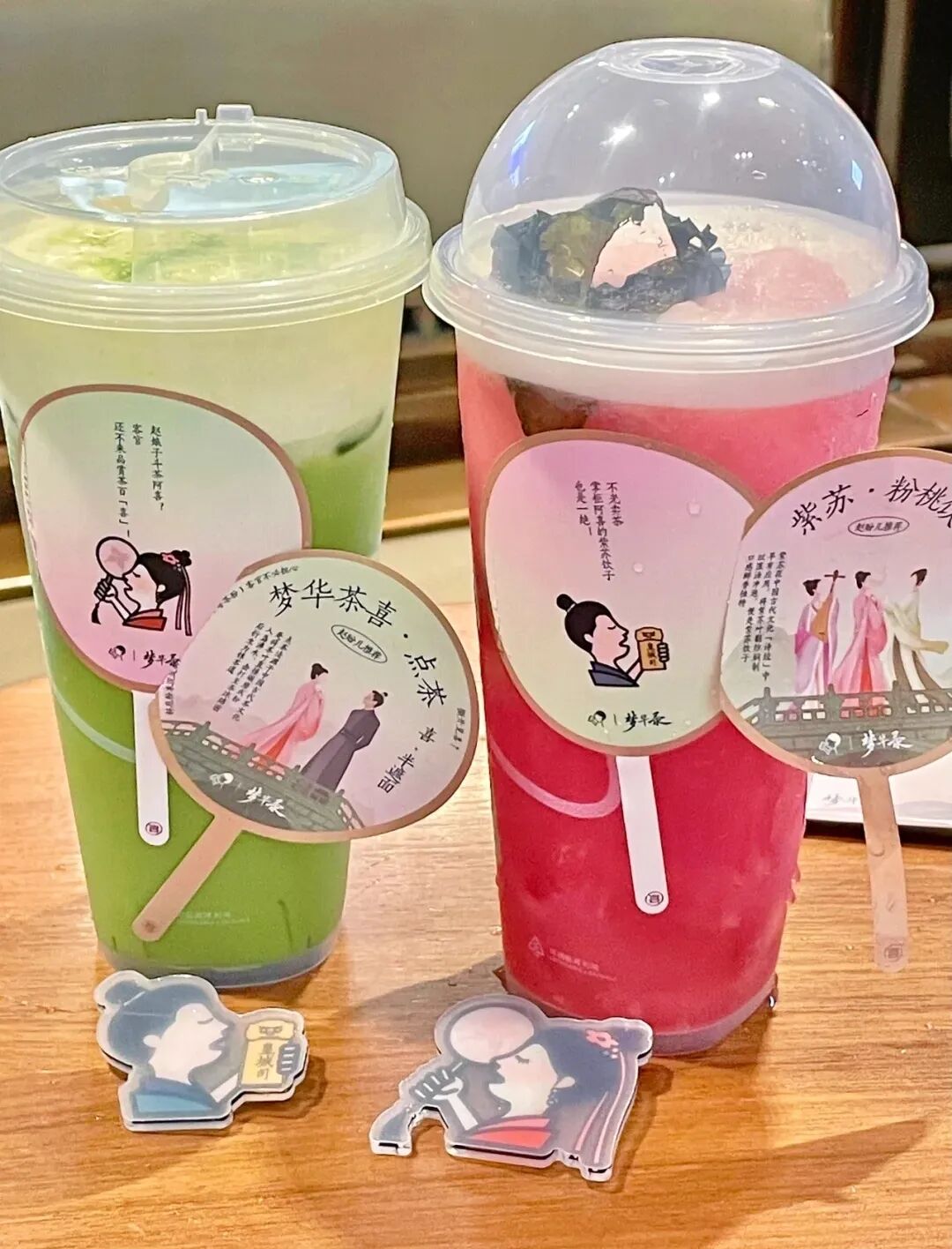 1、推出梦华茶喜·点茶、紫苏·粉桃饮两款定制产品,定价分别为19元和15元