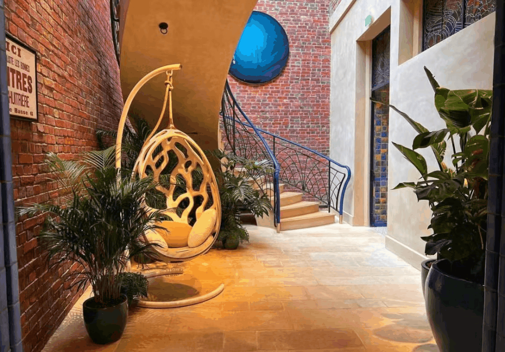 据介绍,店内陈列的都是Objets Nomades 系列家具,并且以木质笼子作为装饰,风格上适配度极高。
