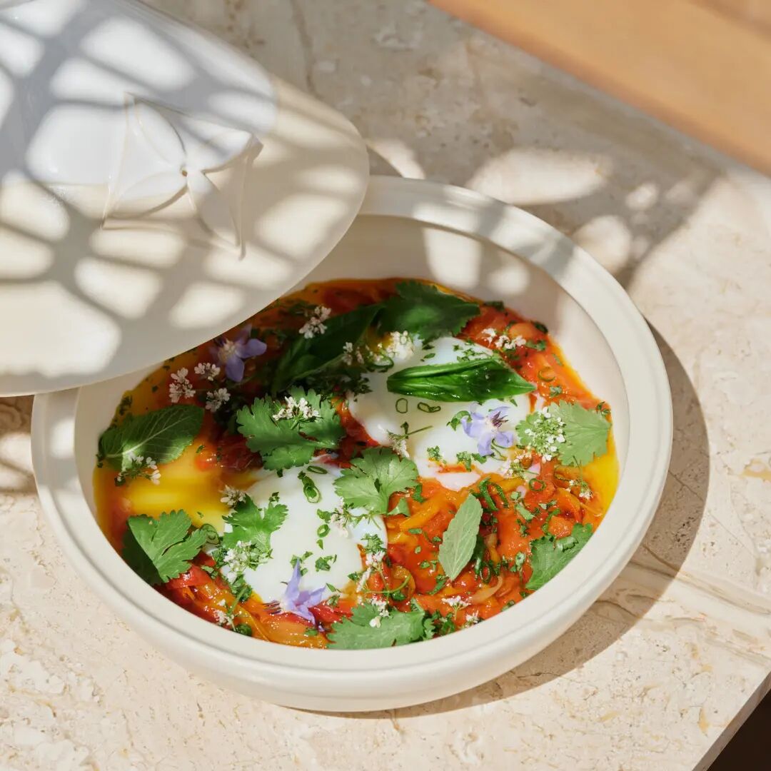 品牌花纹同样“低调”出现在餐具上,比如菜品上的盖子以及瓶子上。