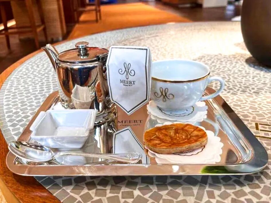 其中合作经营茶室的甜点品牌 Méert位于一楼,顾客在这可以享用带有LV品牌LOGO的华夫饼和热饮。