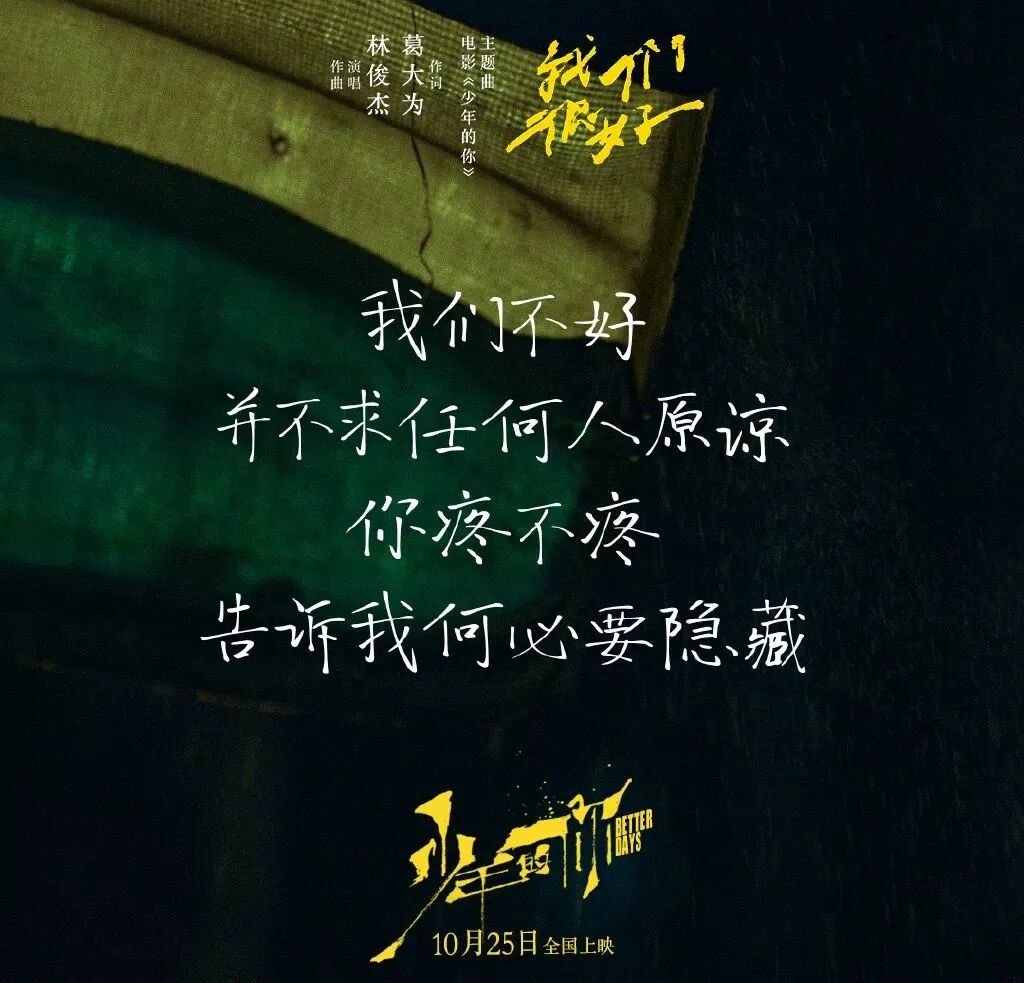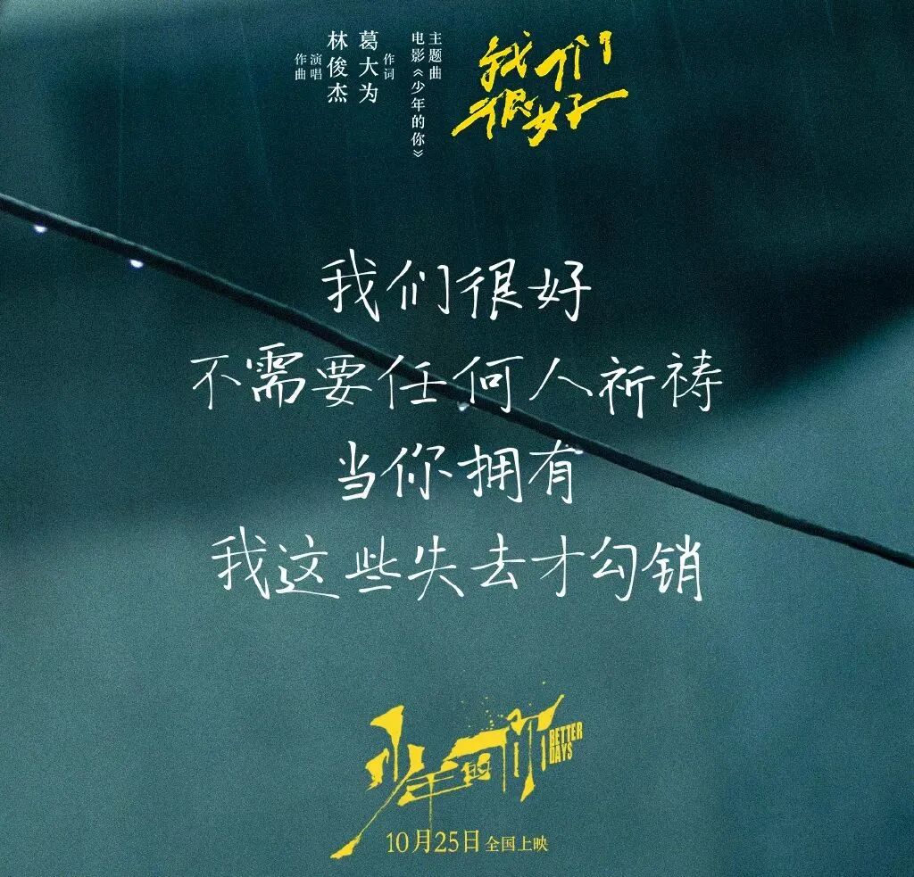 《少年的你》一经上映,单日票房突破上亿,直至目前豆瓣评分仍然保持着8.2的高分。不论是题材还是易烊千玺的演技,都带给人惊喜,配上戳心的台词文案,更是让人破防。