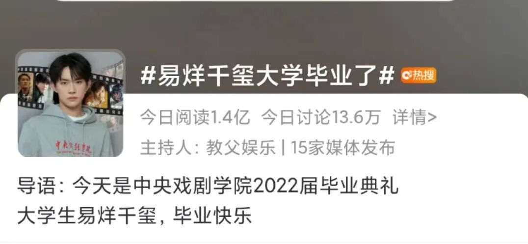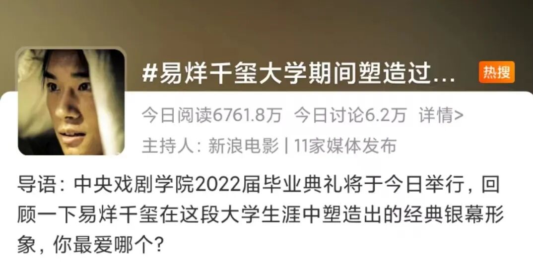 中戏2022届毕业生名单曝光了,易烊千玺正在其中。岁月匆匆不留情面,当初那个唱《青春修炼手册》小男孩在成长的路上步履不停,2022年的他大学毕业了。