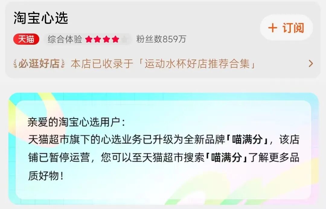 近日,“淘宝心选”官方旗舰店正式宣布暂停运营,原心选业务升级为全新品牌“喵满分”,聚焦年轻家庭人群的各项消费需求。